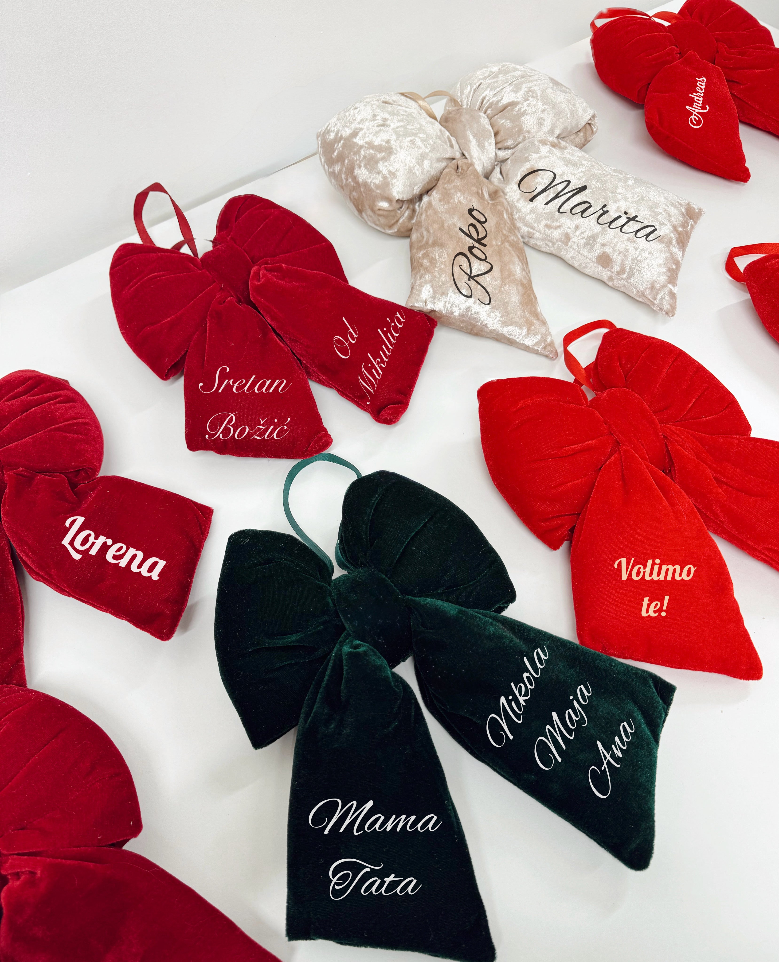 Naša plišana personalizirana mašna savršen je detalj za vaše božićni drvce, dječju sobu, poklon ili dekoraciju. Ručno izrađena od mekog i kvalitetnog pliša, ova mašna odiše nježnošću i stilom, a personalizacija joj daje jedinstven i emotivan značaj.