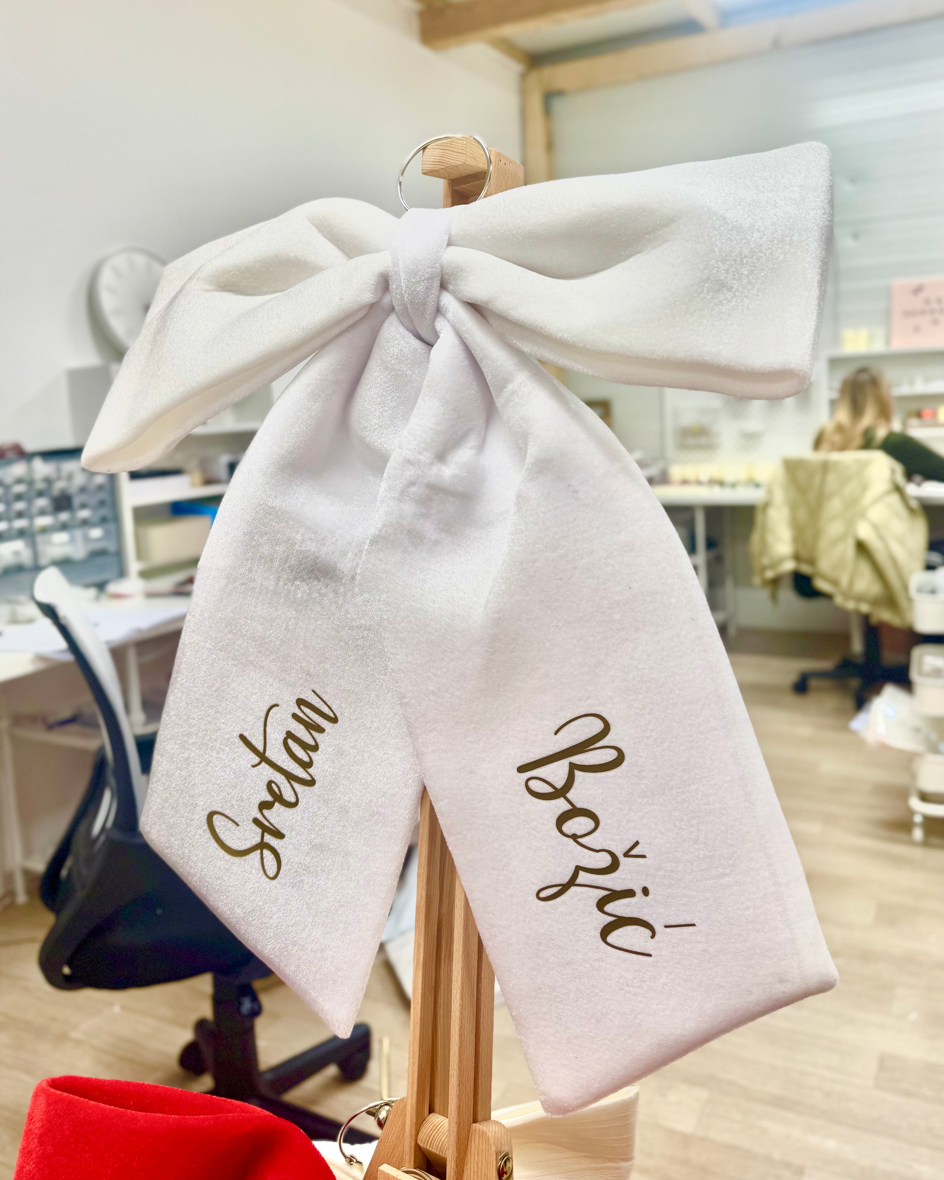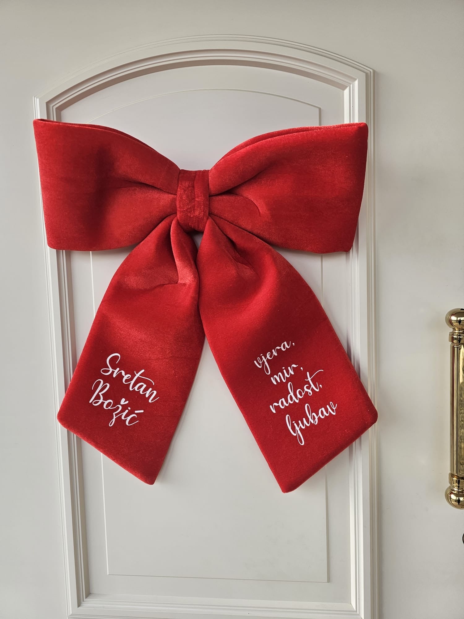 Plišana Mega mašna za vrata koja pruža eleganciju i posebnost svakom domu. Idealna je za obiteljske domove, proslave ili poslovne objekte. Unesite dašak božićne topline u svoje domove uz personaliziranu mega mašnu!