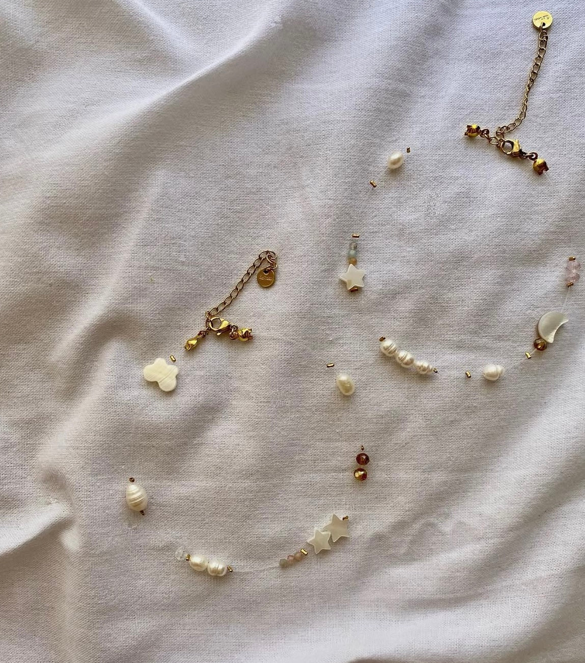 Izrađene od čvrste prozirne sajle konjske dlake s kombinacijom perlica, nepravilnih riječnih bisera, poludragog kamenja hematita.