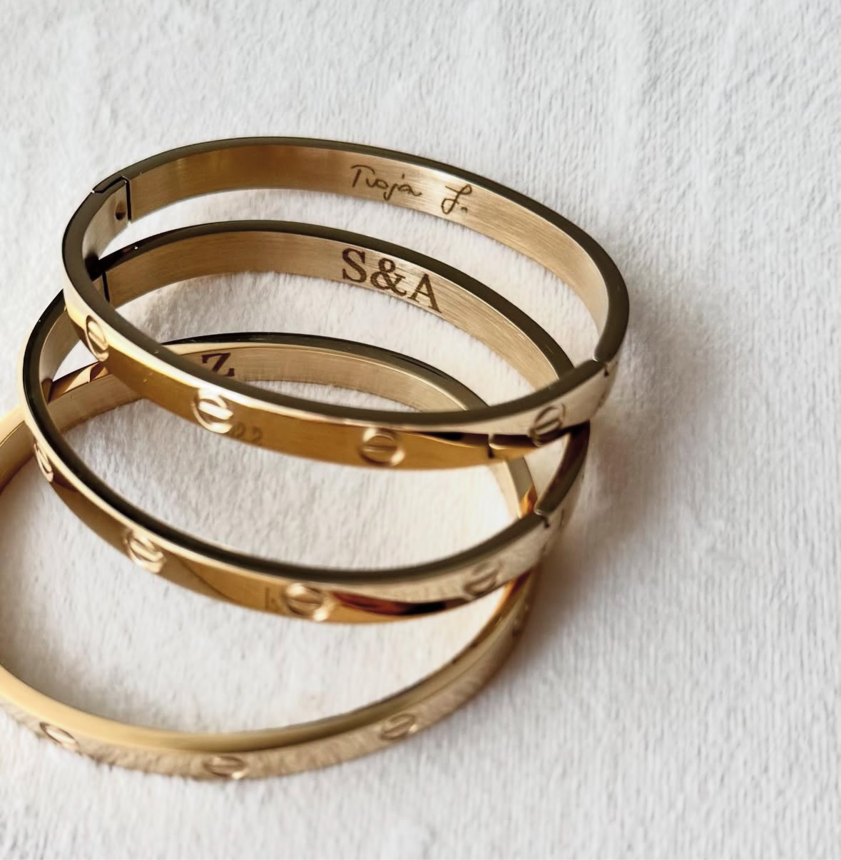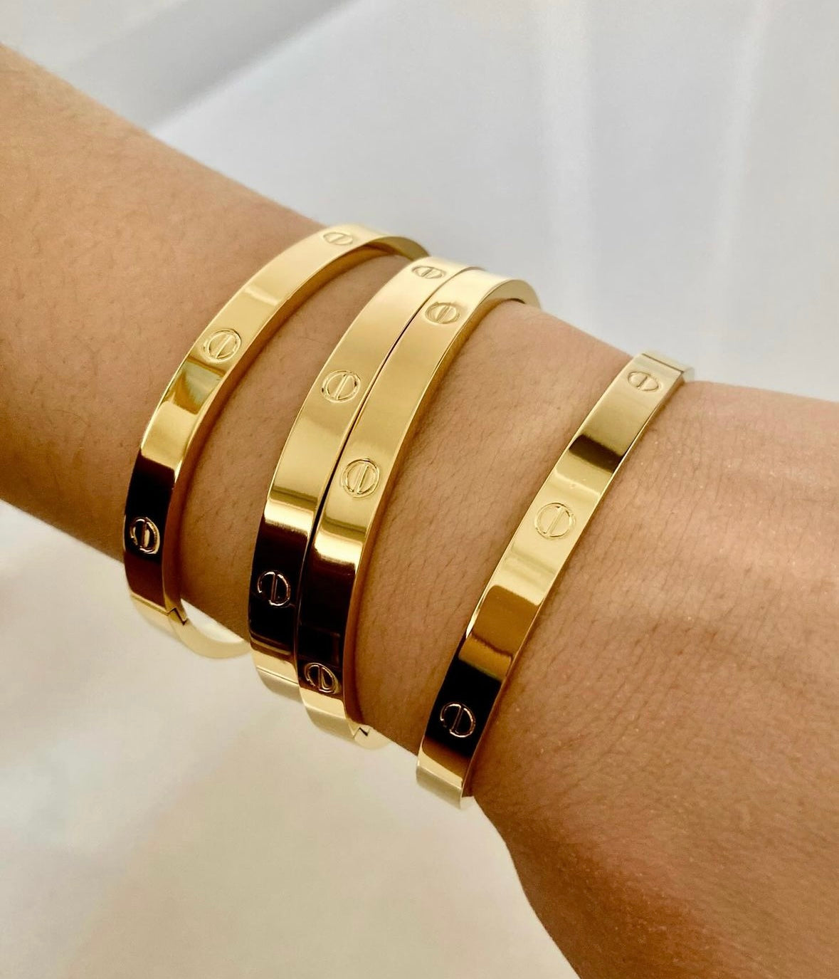 Narukvica od najkvalitetnijeg nehrđajućeg čelika. Nadahnuta popularnom Cartier narukvicom. U univerzalnoj je veličini i dolazi u srebrnoj i zlatnoj varijanti.