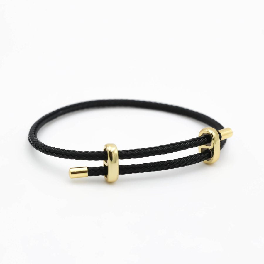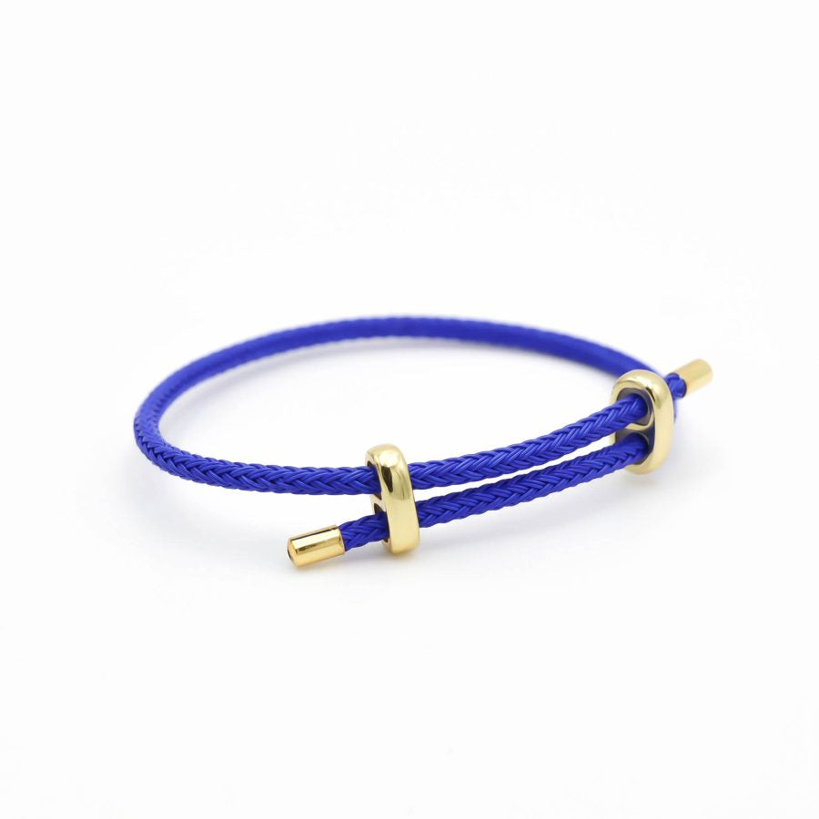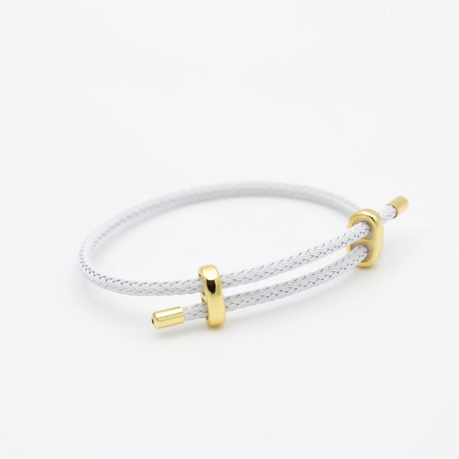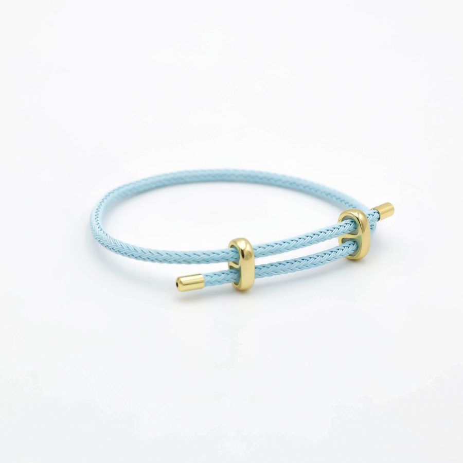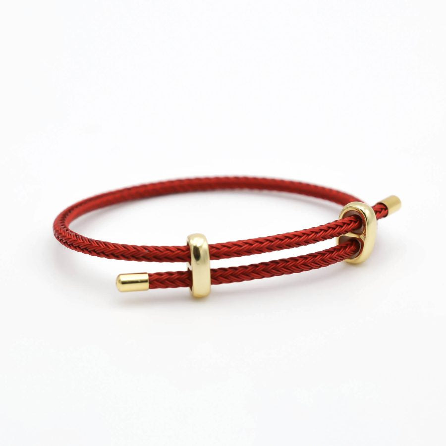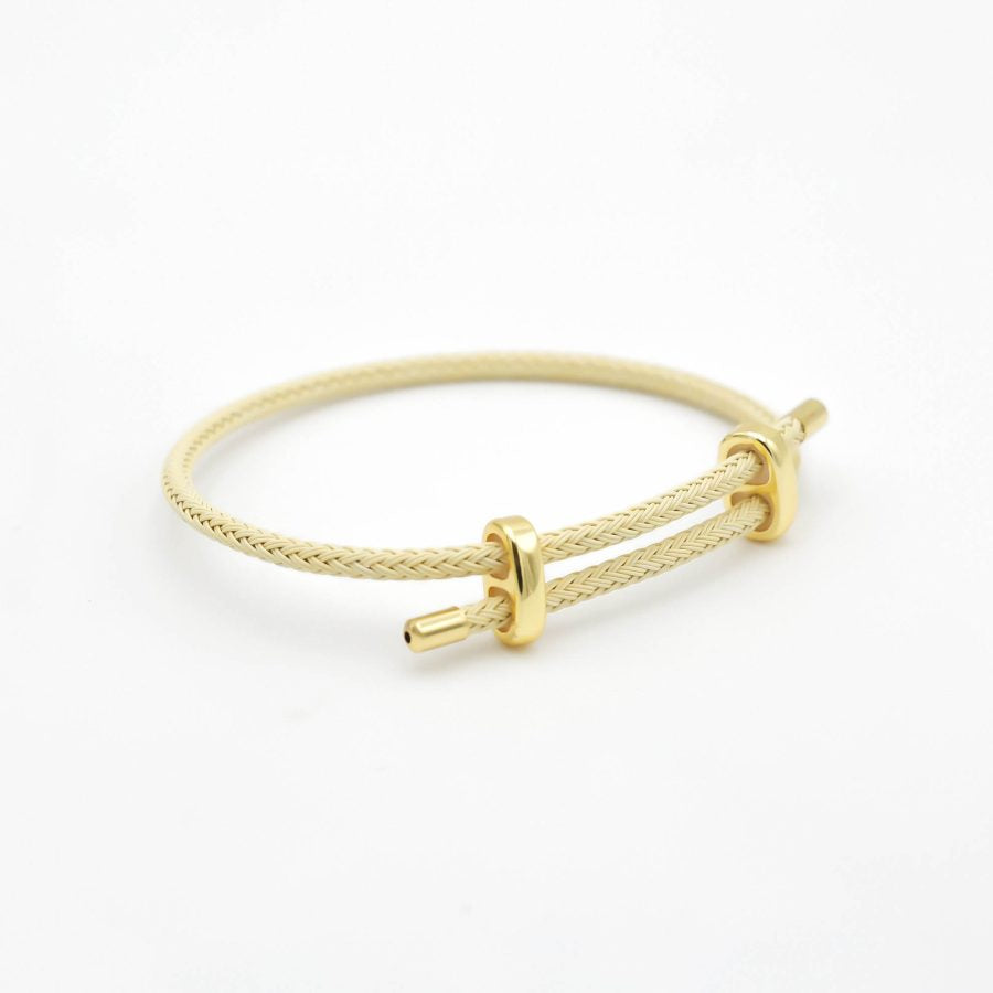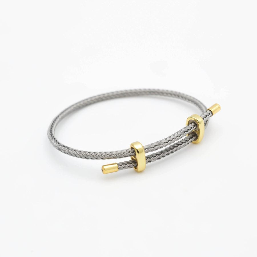 Narukvica na čvrstoj žici obučena u pletene niti s kombinacijom nehrđajućeg čelika.
