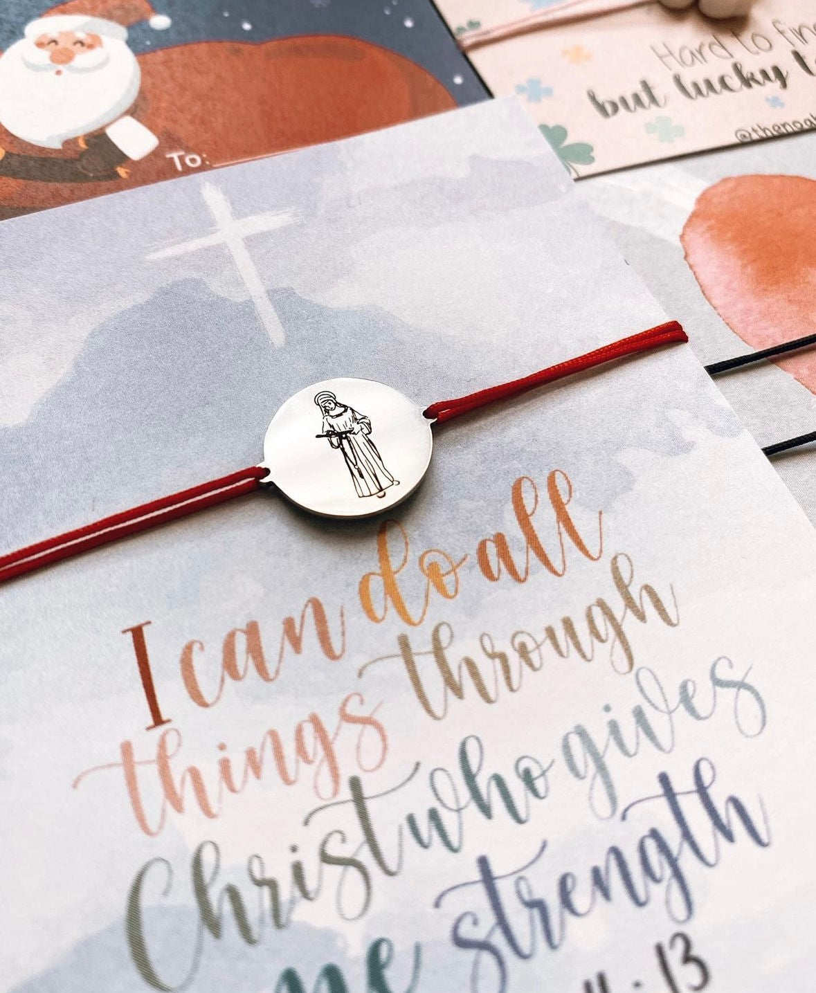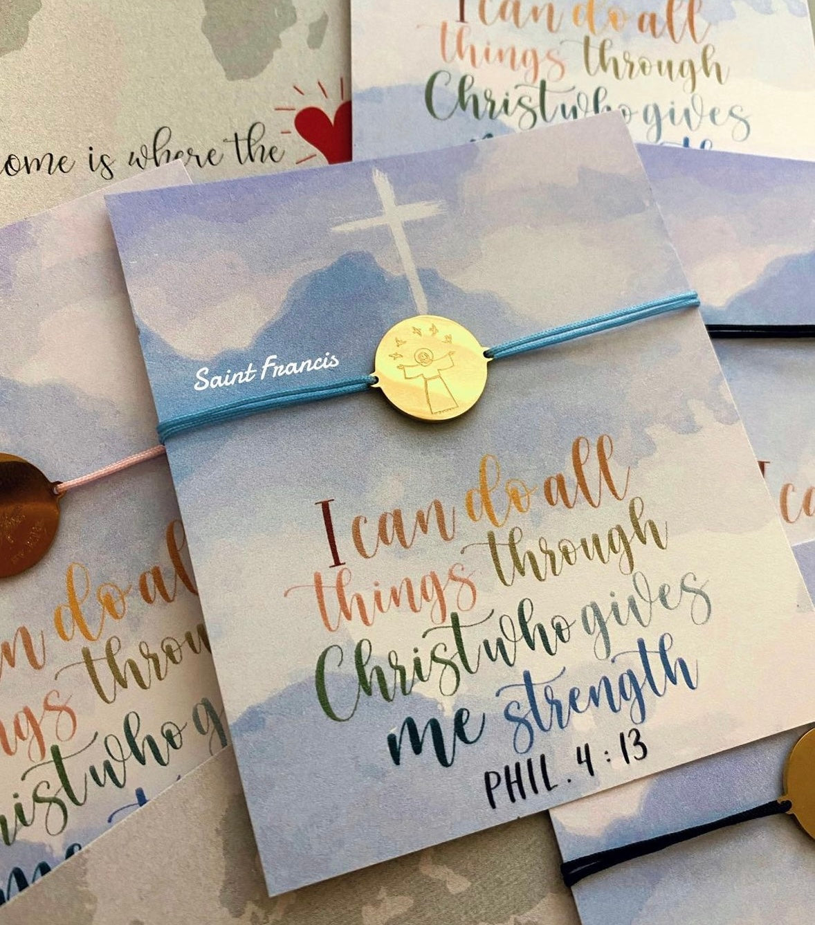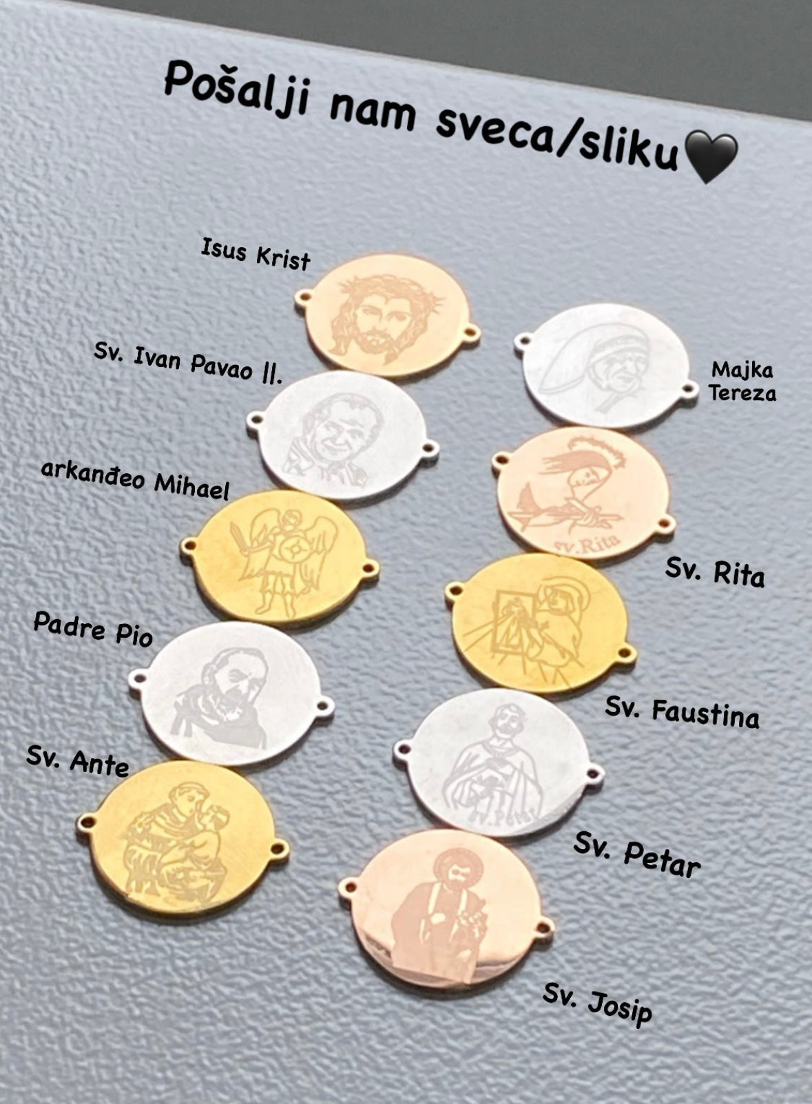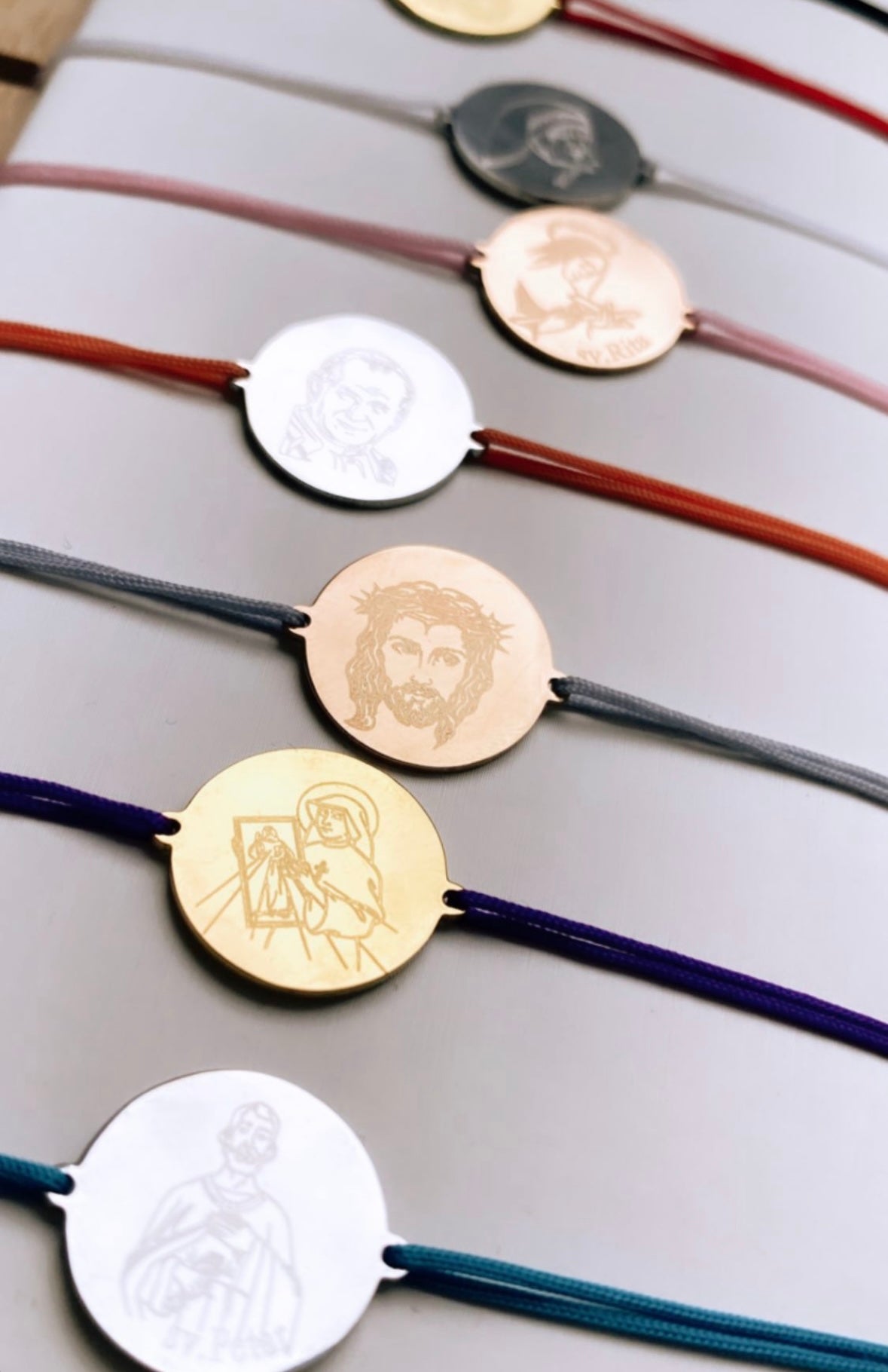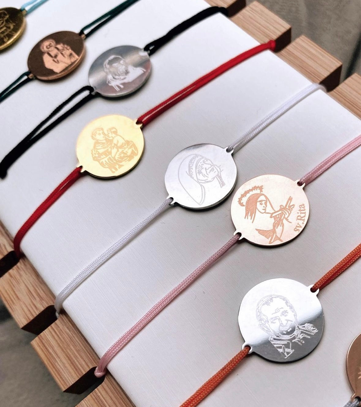Narukvice s gravurom sveca. Izaberi svojeg najdražeg sveca i boju špagice. Sliku ili ime sveca ostavi ispod slike.