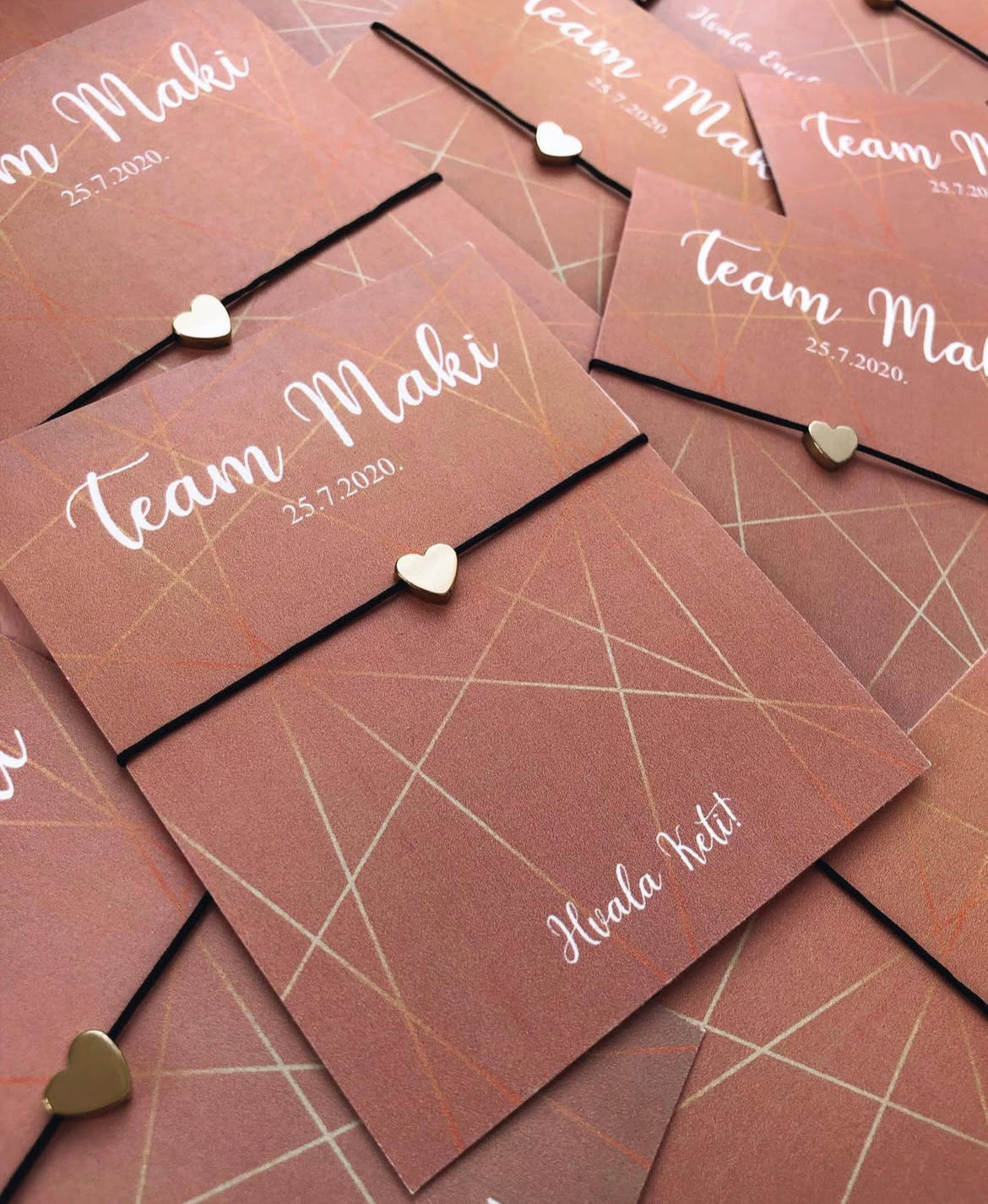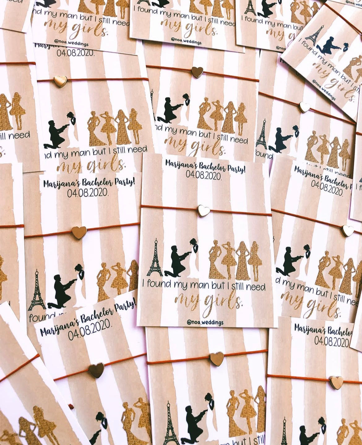 Narukvice su savrše dodatak za svaki djevojački party! Ručno rađene, s pažljivo odabranim materijalima, narukvice su elegantne i jedinstvene. Svaka narukvica dolazi s personaliziranim kartonom na kojem možete ugravirati ime mlade, datum, ili čak inspirirajuću poruku, čineći ovaj poklon još posebnijim.