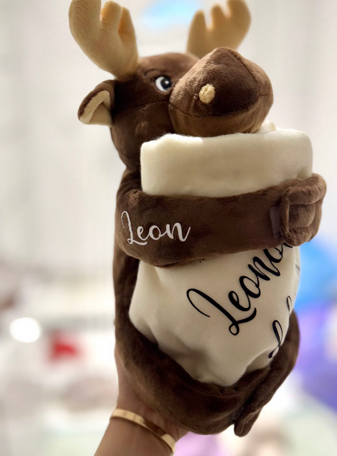 Mekana plišana igračka u obliku soba sa dekicom savršen je poklon za najmlađe. Deka je od polar flisa, dimenzija 120 x 80 cm. Plišana igračka je dimenzija 20 x 25 cm.