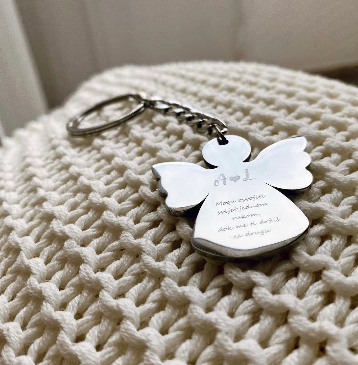 Privjesak za ključeve s gravurom na nehrđajućem čeliku savršen je spoj stila i funkcionalnosti. Nehrđajući čelik osigurava dugovječnost i otpornost na oštećenja. Gravura na čeliku može biti personalizirana prema tvojoj želji — ime, datum, citat, simbol, slika, rukopis — čineći privjesak jedinstvenim i osobnim.