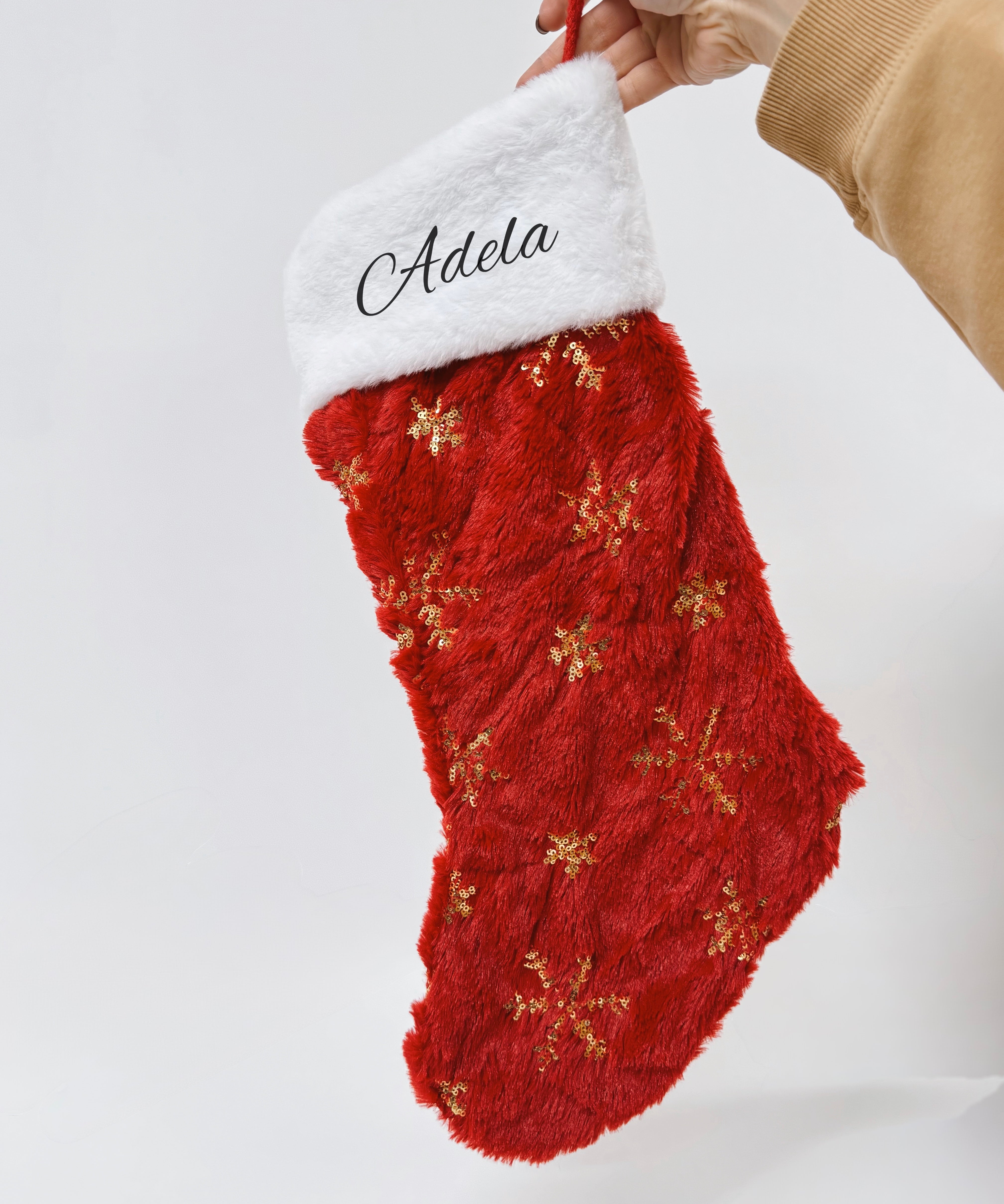 Unesite toplinu i čaroliju blagdana u svoj dom uz našu personaliziranu božićnu čizmicu od pliša! Izrađena od mekane, visokokvalitetne plišane tkanine, ova čizmica odiše elegancijom i blagdanskim šarmom. Idealna je za poklone od Djeda Božićnjaka, slatkiše, sitne poklone ili kao dekorativni dodatak koji će svaku prostoriju ispuniti božićnim duhom.
